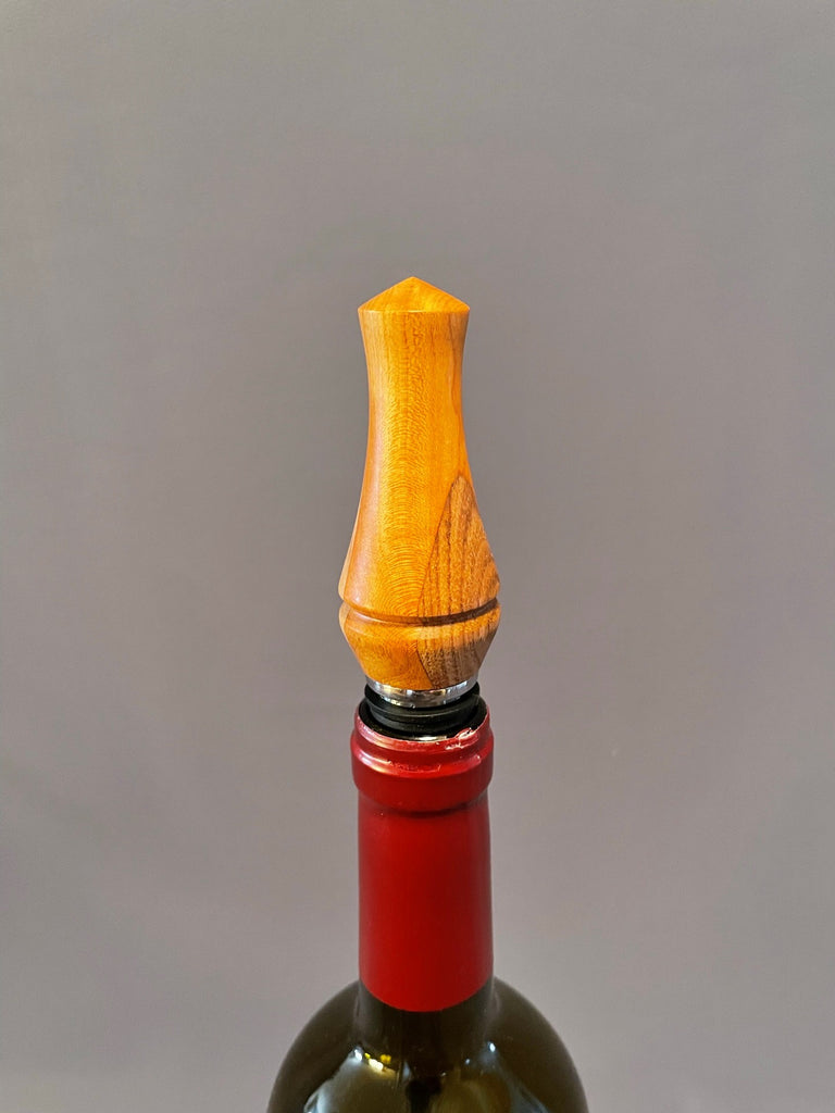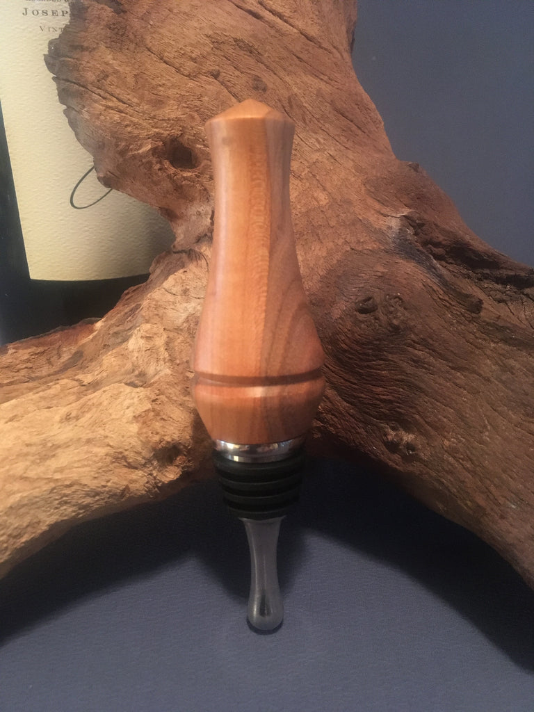 This hand-turned wine bottle stopper is made from Cherry and Butternut.