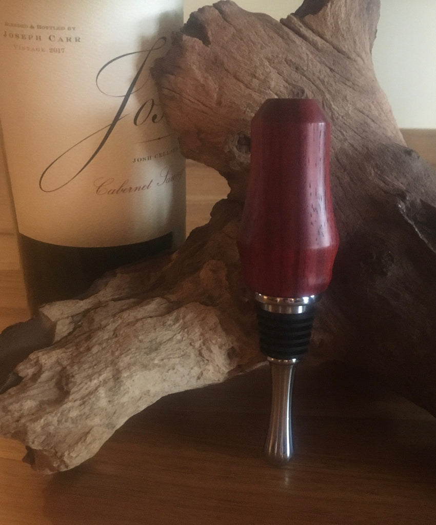 This stopper's overall length is approximately 5 1/2 inches and 1 1/2 inches in diameter.