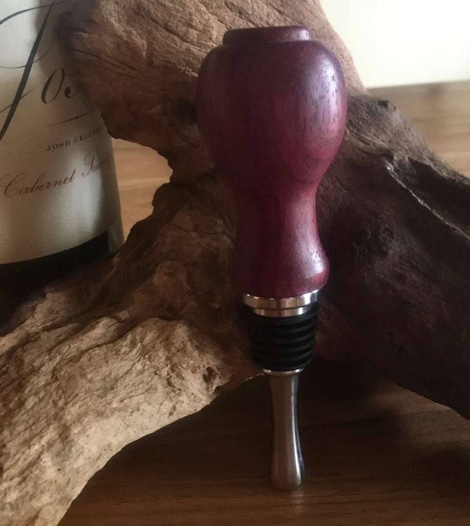 This hand-turned wine bottle stopper is made from Purpleheart.