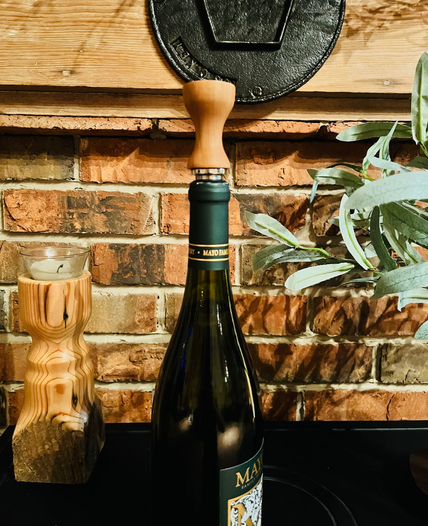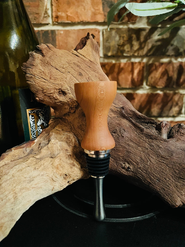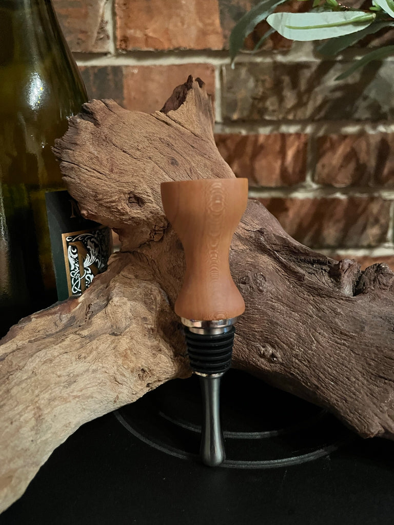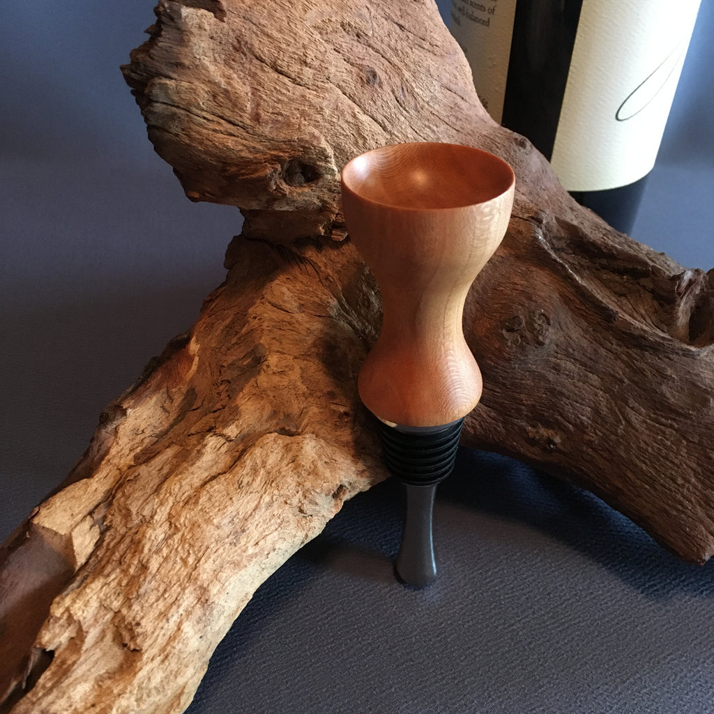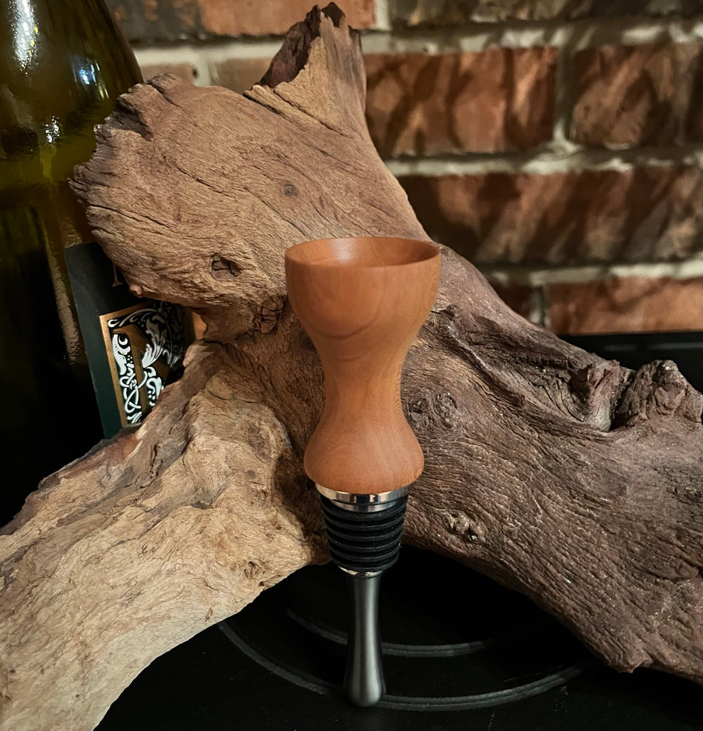 Showcase your favorite bottle of wine with this hand-turned Cherry wine glass bottle stopper.