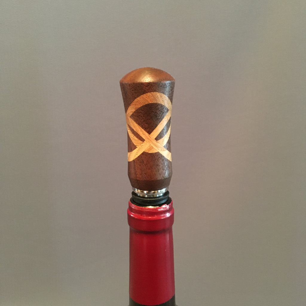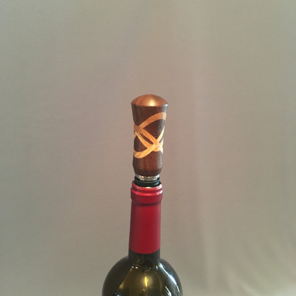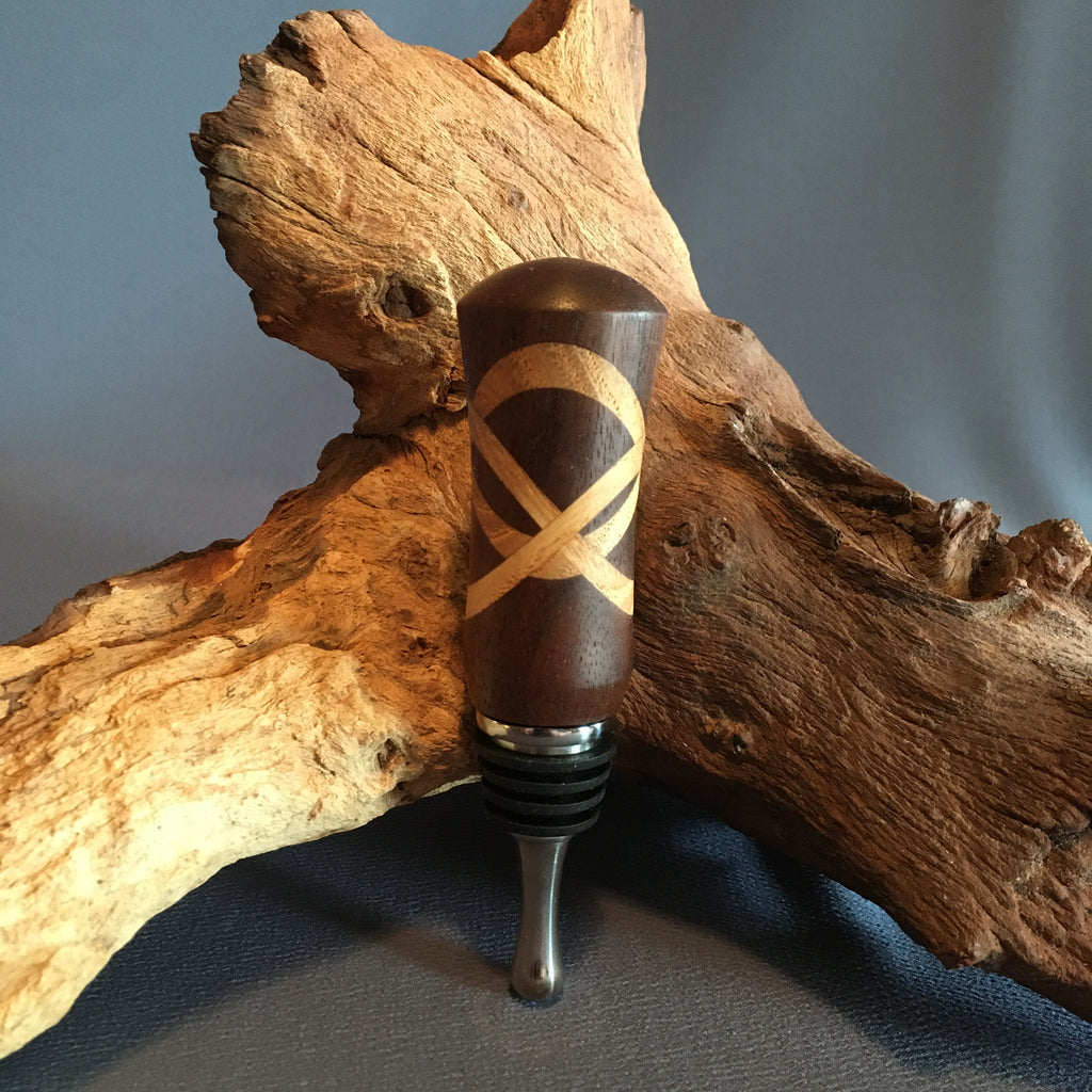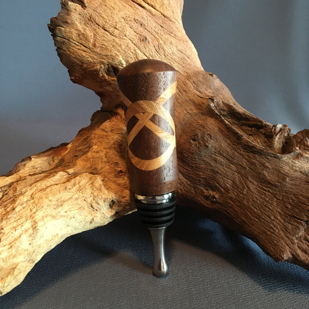 Showcase your favorite bottle of wine with this hand-turned Walnut wine bottle stopper with Chestnut accenting.
